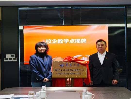 在与会人员共同见证下,张燕与刘德超分别代表双方党委签署了党建共建协议。宋立峰、许栩共同为青岛大学现代企业管理现场教学点(西海岸国际能源自贸港)揭牌,标志着双方合作正式开启党建与业务融合发展、校企协同共进的新篇章。